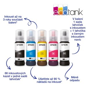 TISK Number of colours: 4 colour Max. rychlost tisku: 33 Str./min Černobíle (obyčejný papír), 20 Str./min Colour (obyčejný papír), 90 s na fotografii 10 x 15 cm (Papír Epson Premium Glossy Photo Paper) Barvy: Černá [Dye], Azurová [Dye], Žlutá [Dye], Purpurová [Dye] Colours Capacity: Black [65ml], Cyan [65ml], Yellow [65ml], Magenta [65ml]
