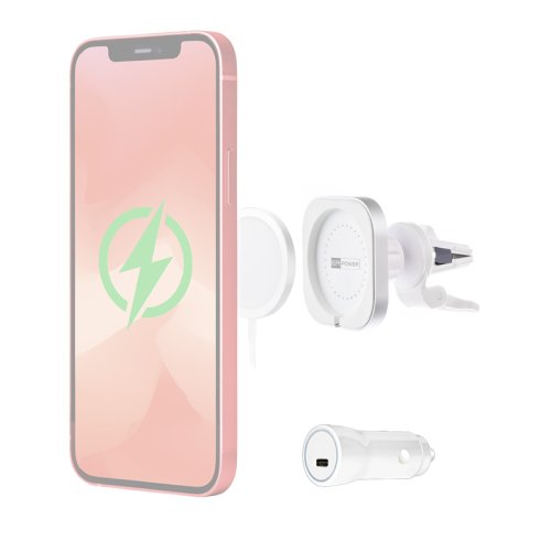 Pevný držák určený pro nabíječku MagSafe dodávaný v sadě s USB-C PD autonabíječkou s výkonem 20W.