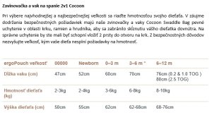 Upozornění: Udržujte mimo dosah tepla a otevřeného ohně. Pro bezpečnější spánek nepoužívejte zavinovačky ani spací pytle, spíte-li spolu s dítětem. Ruce by měly být volné, pokud dítě vykazuje známky otáčení. Návod na oblékání slouží pouze jako návod. prosím, zvažte další faktory, jako je nemoc, klimatizace a to, zda má vaše dítě tendenci být horké nebo studené.