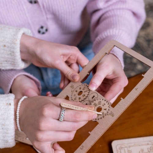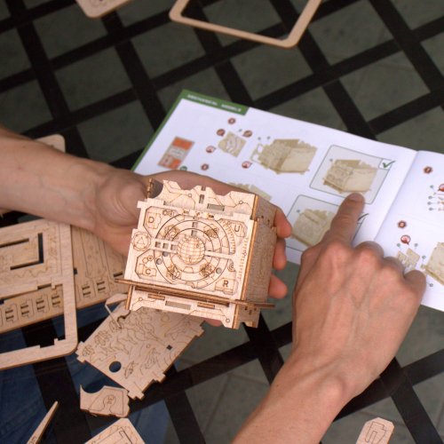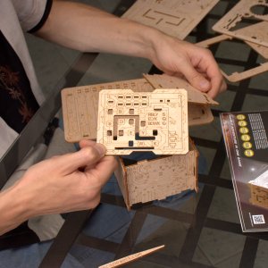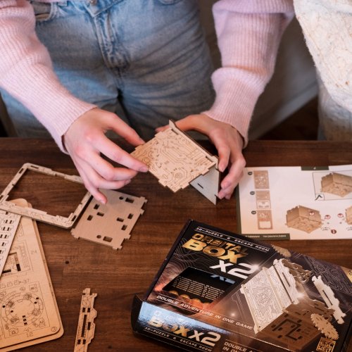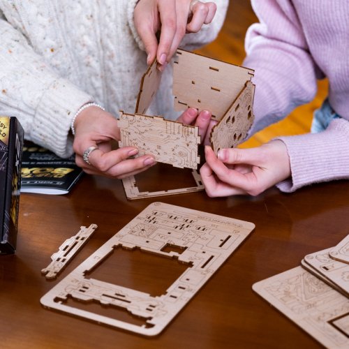 Velíte kolonizačnímu týmu, který míří k jediné obyvatelné planetě ve známém vesmíru, Elysii. Vaše loď opustila sluneční soustavu a provedla skok napříč časoprostorem, aby lidstvu nakonec otevřela nové obzory. K dosažení cíle zbývá udělat už jen několik nezbytných kroků, zkontrolovat radar, určit přesné místo přistání, vypnout systém autopilota a vložit spouštěcí klíče. Kdyby jen napájecí systém lodi nebyl tak matoucí… Ach, hotové bludiště!Jste však zkušený kapitán a žádný úkol Vás nezaskočí. K přípravě přistání v novém domově budete muset zadat správné kombinace písmen a čísel, vložit hesla do databáze a vyhledat spouštěcí klíče. Nezapomeňte na systém proti nedůslednému vkládání, bedlivě sledujte symboly! Chybná zadání zabrání úspěšnému spuštění přistávací sekvence. Zlomte vaz, kapitáne!∗★∗Nepovažujete hotový hlavolam za dostatečnou výzvu a chcete jej napřed sami sestavit? S novou řadou mechanických puzzle EscapeWelt máte jedinečnou příležitost! Stavebnicí z překližky vyzkoušíte svůj důvtip a dovednosti hned dvakrát. Výsledný model ukrývá malou přihrádku, kterou můžete kreativně využít k úschově vodítka ve vlastní dobrodružné hře, nebo zpestření zážitku z drobného dárku. Součástí balení je podrobný obrázkový návod k sestavení a postup odemknutí, který obsahuje také QR kód vedoucí na stránku s nápovědou. Rébus má vždy jedno řešení, kvalitním provedením je ale předurčen k dalšímu použití, neváhejte jím proto dále obdarovat a vyzvat své přátele, nebo členy rodiny. Hlavní vlastnosti: 88 precizně vyřezaných dílkůrozměry vnitřní přihrádky 7,5×9,5×8 cmnízká obtížnost sestavení, střední obtížnost řešeníúniková místnost pro více hráčůnení potřeba lepidlopřírodní březové dřevovyrobeno v EU
