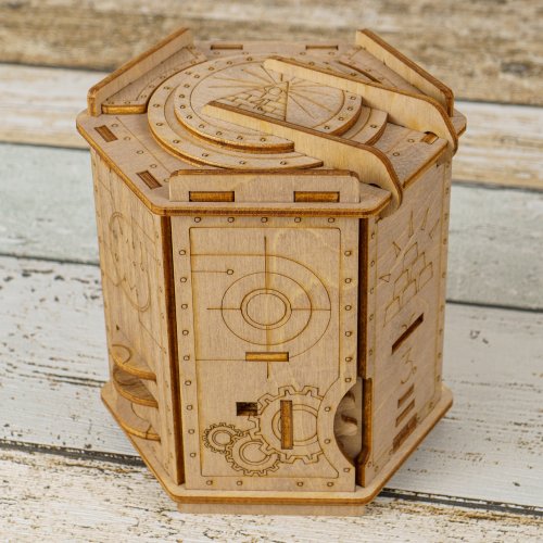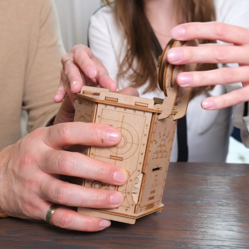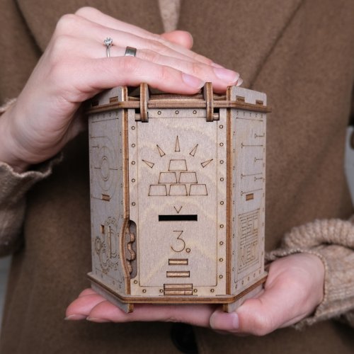 Je rok 1962, sedíte se svými kumpány v zatuchlém skladu hospody svého strejdy. To on vám řekl o převratu. O loupeži pevnosti Fort Knox – místě, kde jsou uloženy rezervy zlata USA. Zlato pro vás ale není nejdůležitějším cílem. Skrývá se tam to, co je hledáno po celém světě. Sám neblaze proslulý zločinec Al Capone položil záhadnou minci do banky tak, že ji nikdo nikdy nenašel. Al Capone řekl: „Ten, kdo minci najde, získá velkou moc a bude moci otevřít jakoukoliv banku. Pochybuji ale, že na světě existuje zločinec, který dokáže toto tajemství odhalit. Co můžete očekávat? To ví jen ti, kteří poklad do pevnosti Fort Knox přinesli. Jedna věc je jistá: pevnost Fort Knox je jedním z nejbezpečnějších míst v USA – prošpikovaná mechanismy navrženými tak, aby byly neprolomitelné. Dokážete získat přístup do trezoru a odhalit tajemství legendárního pokladu? Co na vás čeká v pevnosti Fort Knox?∗★∗Zakuste atmosféru únikových her s originálními scénáři a hádankami u Vás doma! Každý hlavolam ukrývá malou přihrádku, kterou můžete kreativně využít k úschově vodítka ve vlastní dobrodružné hře, nebo zpestření zážitku z drobného dárku. Součástí každého balení je jednoduchý obrázkový návod, který obsahuje také QR kód vedoucí na stránku s nápovědou. Rébus má vždy jedno řešení, kvalitním provedením je ale předurčen k dalšímu použití, neváhejte jím proto dále obdarovat a vyzvat své přátele, nebo členy rodiny. Zážitek obdarovaného zde můžete ještě umocnit za použití Tajemné dárkové krabičky, kterou naleznete v naší nabídce. Hlavní vlastnosti: rozměry vnitřní přihrádky 9×9×4 cmvysoká obtížnost řešeníúniková hra pro více hráčůpřírodní březové dřevovyrobeno v EU