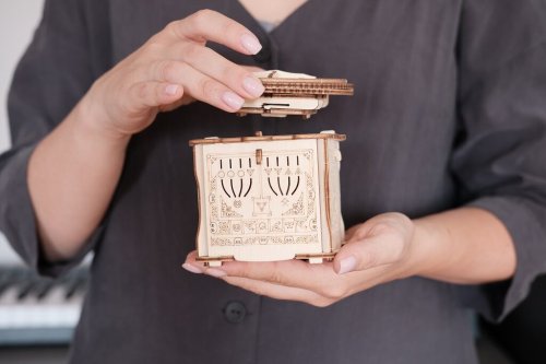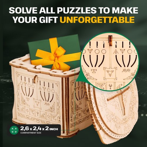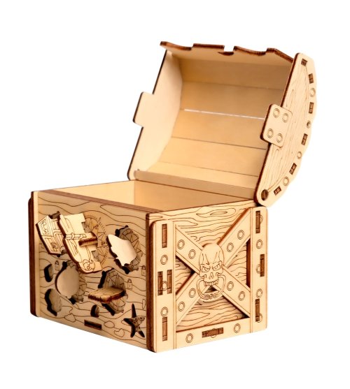 Už žádný nudný balící papír! Věnujte dárek s překvapením a zažijte strhující zábavu díky Pirate´s Treasure Chest box. Chcete darovat peníze, poukázku nebo jiný drobný dárek? A chcete předat dárek skutečně originálním způsobem? Spojte překvapení se zkouškou důmyslu a trpělivosti. S boxem ve tvaru pirátské truhly v inovativním designu vyrobeným z březového dřeva neuděláte chybu. Box je také ideální pro uložení věcí, které jsou vašemu srdci drahé. Elegantní tvar jej proměňuje v umělecké dílo a stane se tak ozdobou každého interiéru. Nenechte si ujít vzrušující zážitek ze hry, množství fascinujících hádanek a nové jedinečné mechanismy. A nemusíte si hrát sami, zapojte celou rodinu nebo přátele. Box je pečlivě vyroben ze 100% přírodních materiálů a všechny jeho části byly přesně vyřezány nejlepší laserovou technologií. Hlavní vlastnosti: vyrobeno ze 100% přírodních materiálůexkluzivní designprecizně vyřezáno nejlepší laserovou technologiípoužitelné opakovaněvhodné jako kreativní dárek s překvapením nebo jako krabička na cennostivyrobeno v EU