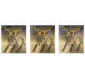 Tyto návazce poskytují mimořádně účinnou prezentaci a jsou sestavovány v našich vlastních továrnách. Jsou vybaveny návlekem ESP D-Sleeve, který zajišťuje klíčové oddělení mezi háčkem a plovoucí nástrahou (pop-up), což vede k lepšímu zaseknutí a spolehlivějšímu držení ryby. Kovový šroubek na nástrahu na D-Sleeve umožňuje rychlé a snadné uchycení pop-up nástrahy. Tyto návazce obsahují háčky Trig-Hammer XT, které jsou výjimečně pevné, s extrémně ostrými a odolnými jehlovými hroty a hladkým PTFE povrchem. Háček je připevněn k rychlovýměnnému matně černému obratlíku Ronnie Ring. Dostupné ve velikostech 4, 5 a 6, ve variantě s protihrotem i bez protihrotu, v balení po třech kusech.