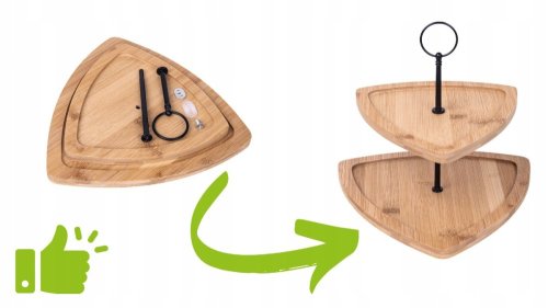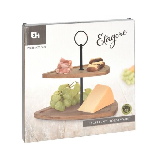 Dřevěný etažér umožňuje servírování a prezentaci sladkých i slaných pochoutek až na dvou patrech, což Vám ušetří místo na jídelním stole.
