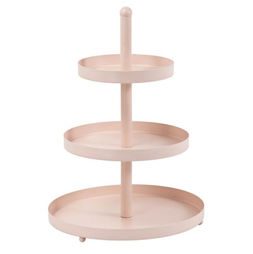 Chystáte dívčí oslavu nebo svatbu anebo se blíží prosinec? Usnadněte si servírování cukroví, zákusků, cupcakes nebo muffinů s třípatrovým nerezovým etažérem v pastelové růžové barvě, který je nejen praktickým, ale i dekorativním doplňkem. Tento 35 cm vysoký servírovací stojan je ideální pro prezentaci dortů, zákusků, makronek, tapas, ovoce nebo slaného pohoštění. Díky klasickému třívrstvému designu šetří místo na stole a zároveň umožňuje krásné uspořádání pokrmů.