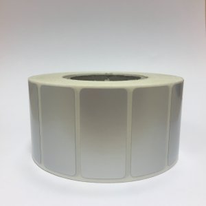 Role plastových etiket o šířce 38 mm a výšce 19 mm. Stříbrné