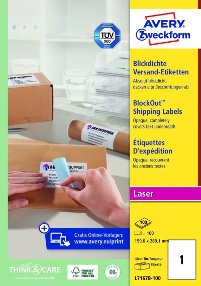 • Etikety na zásilky z extra silného materiálu. Jsou vyrobeny s technologií BlockOut™ - zcela neprůhlené - kompletně zakryjí starý text nebo etiketu