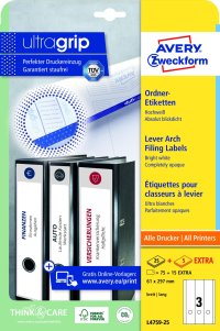 Etikety na pořadače, bílé, 61 x 297 mm, 90 ks
