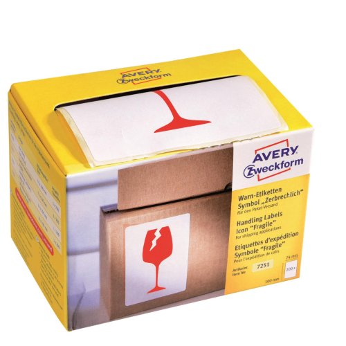 • Etikety na zásilky s varovným symbolem "KŘEHKÉ" ve formátu 74 x 100 mm s mimořádnou přilnavostí a výbornou viditelností