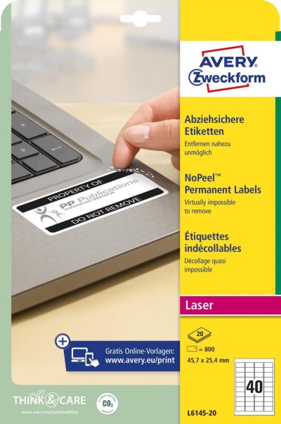 • Neodlepitelné etikety - ideální jako kontrolní plomby, kalibrační údaje, bezpečnostní varování, záruční informace, trvalé značení majetku, inventáře, elektroniky apod.