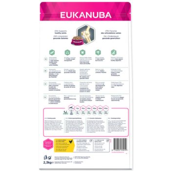 Krmivo EUKANUBA Daily Care pro psy, kteří trpí problémy s klouby. Přidaný glukosamin a chondroitin pomáhají udržovat klouby zdravé a podporují aktivní pohyb. L-karnitin pomáhá zachovat zdravou hmotnost a snížit namáhání kloubů. Speciální šestiúhelníkový tvar granulí spolu s unikátní ochranou DentaDefense pomáhá udržovat zuby čisté a zdravé. Bohaté na kuřecí maso, které pomáhá udržet štíhlé svaly. ?
