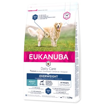 Obsahuje nezbytné vitamíny a minerály, které váš pes potřebuje. Správná hmotnost je klíčový faktor pro zdraví a pohodu psa. Přesto počet psů s nadváhou roste. Nadváha zvyšuje riziko chorob, jako je cukrovka, onemocnění srdce a problémy s klouby. Výživa hraje při kontrole hmotnosti klíčovou roli. Proto společnost Eukanuba vyvinula krmivo Eukanuba Excess Weight, které dospělým psům pomáhá dosáhnout štíhlého těla a užít si aktivní interakce s jejich páníčky.