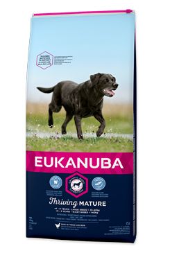 Nová EUKANUBA vylepšená receptura se zaměřením na konkrétní fázi života - pro starší psy velkých plemen od 6 do 9 let – poskytuje na míru upravenou výživu pro zdravé stárnutí vašeho staršího psa. Naše jedinečná na míru upravená receptura pro velké starší psy obsahuje směs vlákniny, prebiotika FOS a řepné dužiny pro podporu zdravého zažívání, vápník pro silné kosti, glukosamin pro zdravé klouby, přirozený zdroj mastných kyselin omega-6 a omega-3 pro zdravou kůži a srst, L-karnitin, který pomáhá s udržením ideální váhy a antioxidanty, vitamin E a C pro podporu imunitního systému. Naše unikátní granule ve tvaru šestiúhelníku s přídavkem DentaDefense také pomáhají s udržováním čistých a zdravých zubů. Pokročilá výživa pro velké starší psy se zaměřením na podporu optimálního tělesného stavu a celoživotní pohodu.