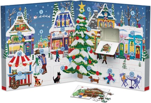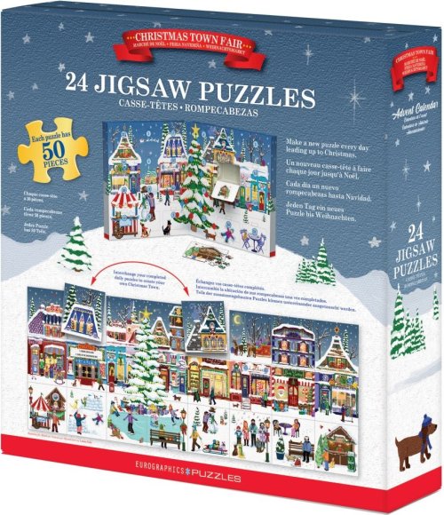 kalendář obsahuje 24 různých puzzle obrázků s vánočním motivem, každé puzzle má 50 dílků, obrázky mají čtvercový tvar a rozměr jednoho puzzle je 12,5 x 12,5 cm, kalendář obsahuje 24 okének a je znovu použitelný (pro příští rok si s jeho pomocí můžete vytvořit originální adventní kalendář naplněný drobnostmi nebo něčím sladkým), v každém okénku je vyobrazená předloha skládaného obrázku, na zadní straně obalu jsou vyobrazeny všechny předlohy.