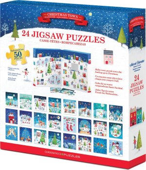 kalendář obsahuje 24 různých puzzle obrázků s vánočním motivem každé puzzle má 50 dílků obrázky mají čtvercový tvar a rozměr jednoho puzzle je 12,5 x 12,5 cm kalendář obsahuje 24 okének a je znovu použitelný (pro příští rok si s jeho pomocí můžete vytvořit originální adventní kalendář naplněný drobnostmi nebo něčím sladkým) v každém okénku je vyobrazená předloha skládaného obrázku na zadní straně obalu jsou vyobrazeny všechny předlohy