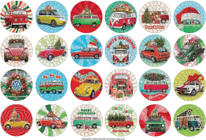 kalendář obsahuje 24 různých puzzle obrázků s vánočním motivem, každé puzzle má 50 dílků, obrázky mají čtvercový tvar a rozměr jednoho puzzle je 12,5 x 12,5 cm, kalendář obsahuje 24 okének a je znovu použitelný (pro příští rok si s jeho pomocí můžete vytvořit originální adventní kalendář naplněný drobnostmi nebo něčím sladkým), v každém okénku je vyobrazená předloha skládaného obrázku, na zadní straně obalu jsou vyobrazeny všechny předlohy.