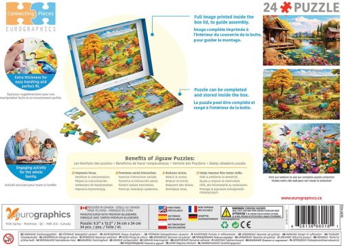 Puzzle tak nejsou pouze zábavou, ale také vhodnou pomůckou pro mentální trénink, snižování stresu a zlepšení koncentrace. Díky velkým dílkům se jedná o ideální volbu pro seniory nebo pro osoby s demencí nebo osoby s omezenou motorikou. Puzzle je baleno v praktické krabičce s odklápěcím víkem. Obrázek skládáte přímo v krabičce. Uvnitř víka obrázek motivu pro snadnou orientaci a sestavení puzzle. Obrázek je od výrobce dodáván ve složeném stavu. Ekologická výroba: recyklovaný kartón, tisk rostlinnými inkousty.