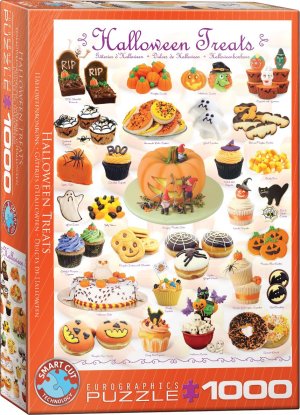 Puzzle EUROGRAPHICS s obrázky nejrůznějších druhů halloweenských sladkostí. Názvy dobrot jsou uvedeny v anglickém jazyce. Raznice puzzle EUROGRAPHICS nekopíruje standardní mřížku, rohy a hrany dílků nejsou vždy v jedné ose a dílky mají neobvyklý tvar. Obtížnost puzzle je tak vyšší než u klasické mřížkové raznice, kterou používají přední výrobci v Evropě. Rozměr složeného puzzle cca 48,89 x 67,63 cm