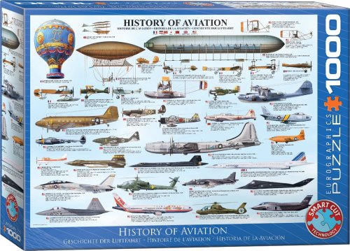 Puzzle představuje historii letadel, od balonu přes vzducholoď, Boingy až po Lockheed (např. Royal Aircraft Factory SE-5, Supermarine Spitifire, Boing B-29, BELL X-1, Boing 777-200, Lockheed Martin F-35 a další). U každého letadla jsou popisky obsahujíci název, rozměry, země původu a maximální rychlost.
