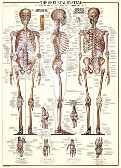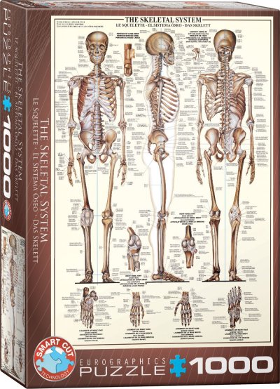 Puzzle pro všechny, které zajímá anatomie lidského těla. Puzzle zobrazuje a detailně popisuje lidskou kostru. Popisky obrázků jsou v angličtině, francouzštině a španělštině.
