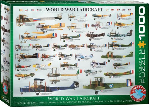 Puzzle představuje nejslavnější letadla první světové války z Francie, Německa, Anglie, Itálie a USA. U každého letadla je uvedeno jeho označení, rozměry, země původu a jiné údaje.
