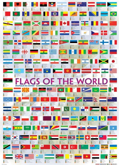 Kromě 197 státních vlajek puzzle obsahuje také základní údaje o příslušných státech: název státu v angličtině, počet obyvatel, rozloha v kilometrech čtverečních a název hlavního města.