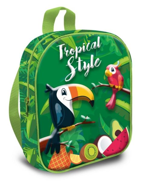 EUROSWAN Dětský 3D batůžek Tukan Materiál: 100% Polyester Rozměr: 30x24x10 cm Malý dětský batůžek je lehký, z pevného a nepromokavého materiálu. Batůžek se skládá z jedné velké kapsy na zip, je opatřen nastavitelnými popruhy a ouškem na zavěšení. Na přední straně 3D obrázek
