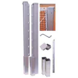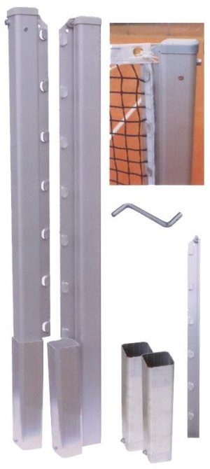 Tenisové sloupky Evo 80 z eloxovaného hliníku. Mají čtvercový profil 80x80 mm se zaoblenými hranami.