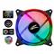 RGB LED ventilátor typu rainbow s LED diodami umístěnými ve vnějším obvodu, jedná se o tzv. typ ring. Ventilátor umožňuje najednou zobrazit všech sedm barev duhového spektra. Jedná se o podřízený ventilátor, který je určen pro použití s řídícím ventilátorem EVOLVEO 12RM. LED osvětlení je ovládáno pomocí tlačítka reset nebo LED tlačítka na ovládacím panelu skříně nebo připojením přiloženého ARGB kabelu k základní desce.