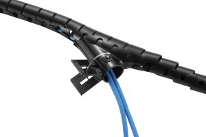 Součástí balení je i praktický instalační klip, který výrazně usnadňuje vložení kabelů do trubice, a to po celé její délce. Jednotlivé kabely navíc můžete z trubice v jakékoliv její části vyvést, takže není problém odbočit k monitoru, tiskárně nebo reprobedně přesně tam, kde potřebujete. Výsledkem je přitom promyšleně vedený svazek, který působí přirozeně a zároveň maximálně organizovaně.