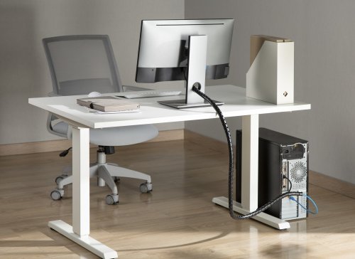 Trubice tohoto organizéru kabelů je vyrobena z měkčeného plastu, který zaručuje extrémní flexibilitu. Snadno se přizpůsobí tvaru pracovní desky, zatočí za roh nebo třeba obejde nohu stolu. Místo tvrdé trubky, která si žije vlastním životem, tak máte po ruce loajálního pomocníka, který vám poslouží přesně tam, kde ho potřebujete.
