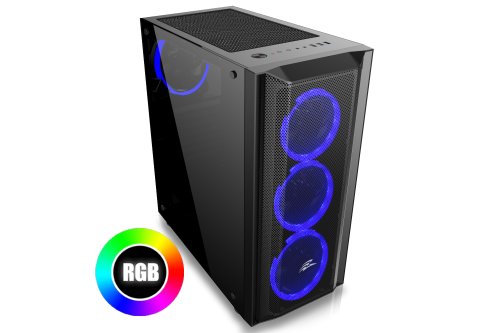 Herní ATX midi tower s instalovanými 4x RGB rainbow 120 mm ventilátory, které se ovládájí pomocí LED tlačítka na horní straně ovládacího panelu. Čelní mřížka přes celý přední kryt zajišťuje efektivní proudění vzduch. Levá strana skříně obsahuje bočnici z tvrzeného skla. Skříň je určená pro základní desky podporující platformu Intel i AMD. Mimo formátu ATX je kompatibilní i s formátem Micro ATXa Mini ITX. Napájecí zdroj se umísťuje do dolní části skříně. Spodní mřížka je osazena vysouvacím prachovým filtrem, horní prachový filter je uchycený magnety a je odnímatelný.