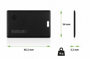 Svou velikostí a tvarem připomíná EVOLVEO TrackCard klasickou platební kartu. S rozměry 85,2 × 54 mm, tloušťkou pouhých 3,2 mm a hmotností jen 16 g ostatně můžete lokátor nosit v peněžence – jako jakoukoliv jinou kartu. Jakmile ho ale spárujete se svým iPhonem, iPadem či iMacem, začnou se dít věci. Tato zdánlivě obyčejná kartička začne vysílat Bluetooth signál a ten se pak přes zařízení ostatních uživatelů přenáší na precizně zabezpečené servery Apple iCloud. Polohu vašeho lokátoru tak neustále zpřesňují stovky milionů přístrojů z celého světa. Když pak kartu ztratíte, není problém ji najít.