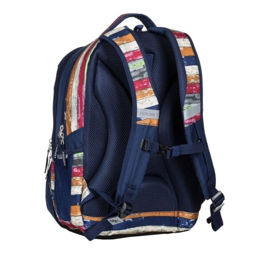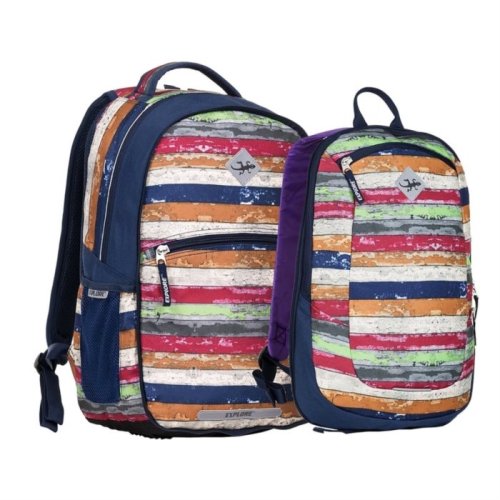Studentský batoh 2v1 VIKY je dvoudílný a tříkomorový. Dvoudílný (2v1) znamená, že zip u prostřední komory jde buď úplně rozepnout a tím se rozdělí batoh na dva. Nebo se rozepne jen částečně a slouží jako plnohodnotný tříkomorový batoh. Větší batoh má zádovou část s polstrováním a ergonomickým systémem pro ochranu páteře. Široké nosné řemeny jsou opatřeny výškově nastavitelným spojovacím prsním páskem. Dno batohu má vnitřní podložku, která zpevní jeho celkovou konstrukci a zajistí stabilitu batohu při jeho postavení na zem. Na předním dílu je pak velká kapsa na zip. Menší batoh, má organizér našitý na velké vnitřní kapse. Organizér tvoří kapsička na mobil, kapsička na zip a místo na psací potřeby. V horní části je upevněna karabinka na klíče. Na předním dílu batohu je kapsička na zip. Zádová část je polstrována v celé ploše. Batoh má dvě síťované volně přístupné boční kapsy v horním okraji se všitou gumou. Reflexní prvky jsou jak na předním dílu, tak i na nosných řemenech.