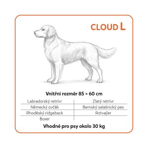 Skutečný odpočinek pro velké psy s vysokými nároky Cloud L je ortopedický pelech pro psy navržený tak, aby poskytl stabilní oporu, úlevu kloubům a maximální pohodlí – každý den.