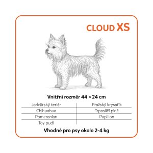 Skutečný odpočinek pro malé psy a štěňata. Cloud XS je ortopedický pelech pro psy navržený tak, aby poskytl stabilní oporu, úlevu kloubům a maximální pohodlí – každý den. Dvojvrstvá matrace, kvalitní materiály a funkční konstrukce dělají z Cloudu ideální místo pro spánek i regeneraci.