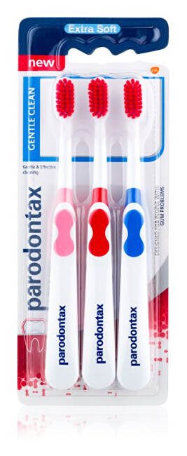 Zubní kartáček Gentle Clean Extra Soft je velmi měkký zubní kartáček, který je speciálně navržený pro použití při krvácejících dásních. Má ergonomickou rukojeť s protiskluzovou úpravou pro pohodlné ovládání. Malá hlava kartáčku dobře pronikne i na hůře dostupná místa. Zakulacená vlákna jsou šetrná k dásním i zubní sklovině, avšak nekompromisní k plaku, který je jednou z hlavních příčin problémů s dásněmi.