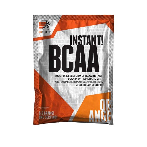 UPOZORNĚNÍ: Dochází k doprodeji původních obalů (sáčků), na kterých naleznete drobné rozpory s údaji na této produktové stránce. Pro jednorázový sáček platí údaje, které aktuálně čtete. Obsah sáčků je stejný jako u velkého balení o hmotnosti 300 g, jedná se tak o zcela totožný produkt. Zcela typickou vlastností BCAA Instant je mírně nahořklá chuť nápoje. Jak je to možné? Nahořklá chuť je charakteristická pro produkty s velmi vysokým obsahem BCAA. Všimněte si, že jeden sáček, který váží 6,5 g, obsahuje celých 5 g čistých BCAA! U jiných značek často nenajdete v dávce ani polovinu BCAA. Zkrátka Extrifit® vyrobil špičkové instantní BCAA – bez cukrů, tuku a jakýchkoli náhražek! O aminokyselinách BCAA BCAA – větvené aminokyseliny L-leucin, L-izoleucin a L-valin – se řadí mezi esenciální (nepostradatelné) aminokyseliny a jsou obsaženy přímo ve svalové tkáni, kde mohou být využity jako důležitý zdroj energie pro svalovou práci, případně jako stavební kameny pro tvorbu svalové hmoty. Aminokyseliny BCAA jsou běžně obsaženy ve stravě, jsou tedy lidskému tělu naprosto přirozenými látkami. Optimální poměr 2 : 1 : 1 Poměr 2 : 1 : 1 odpovídá fyziologické potřebě a zastoupení BCAA v živočišných bílkovinách, které se považují za ty nejkvalitnější pro podporu růstu svalové hmoty a její ochrany. Při vyšším podílu leucinu (např. 8 : 1 : 1) nemusí dojít k jeho většímu využití, ba dokonce může narušit využití ostatních BCAA, protože platí Wolfův zákon o nadbytku esenciálních aminokyselin ("příjem libovolné esenciální aminokyseliny ve velkém nadbytku narušuje metabolismus ostatních aminokyselin a zesiluje projevy limitní aminokyseliny"). Poměr 2 : 1 : 1 je tedy pro maximální využití BCAA optimální. Dosažení maximálních účinků BCAA Pro účinek BCAA je stěžejní správné načasování jejich příjmu a také forma, v jaké BCAA přijmete. Je možné užívat BCAA i v průběhu dne, například při rýsování, základní užívání je ale v čase okolo tréninku. A tehdy potřebujete takovou formu BCAA, která se co nejrychleji vstřebá a také nebude zatěžovat trávicí systém. Pro tento účel jsou ideální BCAA Instant. Z nápoje se volné větvené aminokyseliny skvěle vstřebají, jsou téměř okamžitě k dispozici pro svaly a zároveň ještě dodáte tělu potřebné tekutiny ve formě chutného nápoje. Splňují nejnáročnější požadavky sportovců Díky nulovému obsahu cukrů a tuku je nápoj vhodný i při striktních dietách a při rýsování. BCAA Instant od Extrifitu jsou dokonale rozpustné, nápoj je připraven za několik vteřin a můžete si jej vzít kamkoliv v průběhu dne, začít jej pít před tréninkem a pokračovat při něm, zkrátka jak potřebujete. BCAA Instant vyhovují ve všech parametrech i těm nejnáročnějším sportovcům. Vojta Koritenský pije až 20 gramů BCAA Instant v průběhu celého dne! Klíčové výhody BCAA Instant: