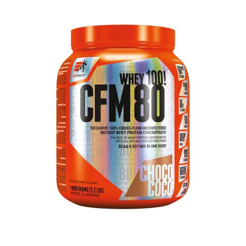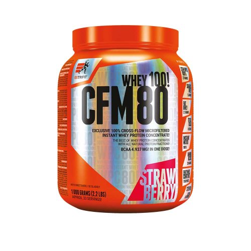 nejkvalitnější zdroj bílkovin – nativní CFM instantní syrovátkový koncentrát vyrobený v Evropské unii protein je zpracován nejšetrnější metodou za studena na keramických mikrofiltrech zachovány všechny důležité bílkovinné frakce (žádné ničení bílkoviny chemií nebo ionty) přidáno 7 silných trávicích enzymů pro dokonalé využití bílkovin a hladké strávení obsažených živin slazen kombinací ověřené sukralózy a steviol-glykosidů přírodního původu z rostliny stévie ovocné příchutě obsahují rozemleté kousíčky 100% ovoce pro ještě lepší chuť plná krémovitost a lahodná konzistence používá pouze a jen přírodní barviva, žádná syntetika 13 naprosto excelentních příchutí, vylepšené na samou hranici možného pro tento typ CFM proteinu 100% instantní – zcela dokonale rozpuštěn za několik sekund špičková stravitelnost a využitelnost bílkovin zcela bezprašný – jemně nadýchaná konzistence určen pro nárůst kvalitní svalové hmoty díky skvělým nutričním hodnotám vhodný také do diety dóza je zatavena v celoplošném sleevu až po víčko – máte jistotu, že právě Vy jste úplně první, kdo protein otevřel pod víčkem indukčně zatavená zátka pro zamezení vstupu vzduchu do produktu Obrovským benefitem je zachování všech bílkovinných frakcí (podívejte se ve složení níže na podrobný rozpis). Navíc jsme přidali komplex sedmi enzymů pro dokonalé strávení proteinu a zabudování bílkovin do svalové hmoty. Jedná se o enzymy papain, alfa-amyláza, bromelain, laktáza, celuláza, neutrální proteáza a lipáza. Kombinace sukralózy a sladidla přírodního původu z rostliny stévie vytváří dokonale vyváženou sladkou chuť! CFM Instant Whey 80 Vám nabízíme ve 13 vynikajících příchutích. V ovocných variantách je obsaženo pravé, sušené ovoce (tedy žádná chemie) a na chuti je to obrovsky znát! Troufáme si tvrdit, že protein CFM Instant Whey 80 chutná nejlépe ze všech. Chuť je plná, výrazná a nápoj nádherně krémový. Obsah proteinu je pro tento typ produktu nadstandardních 75 %! Kromě skvělého složení je tento výrobek oblíben díky snadné a bezproblémové přípravě – je výborně rozpustný, nepráší a netvoří hrudky. O použitém nativním CFM proteinu: CFM je přírodní, nechemický proces výroby syrovátkového proteinu nejvyšší kvality, filtrovaného na speciálním, technologicky vyspělém keramickém cross-flow filtru, který je schopen ve vysoké míře odfiltrovat všechny nežádoucí složky (jako je tuk, laktóza…) a izolovat čistou (panenskou) syrovátkovou bílkovinu se zachováním všech cenných mikrofrakcí, jako je beta-laktoglobulin, alfa-laktalbumin, sérový albumin, imunoglobulin, glykomakropeptidy a laktoferin. To vše bez použití chemikálií či rozpouštědel. CFM je nejšetrnější existující metoda výroby bílkovin, protože surovina není vystavena žádným znehodnocujícím postupům, např. vysokému tlaku, teplotě, iontům či hydroxidům. Pouze samovolně prochází svojí vlastní vahou přes keramické filtry. Díky tomu je finální syrovátkový protein intaktní = nedotčený ničím a nikým = tzv. panenský protein (virgin protein). Jeho struktura, složení bílkovin, vůně, barva a chuť je přirozená, ničím neovlivněná a nezměněná, zůstává v původní, tzv. nativní podobě.