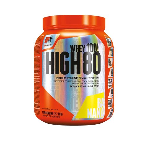 High Whey 80 je naprosto nový výrobek od Extrifitu! Proteinové výrobky a gainery jsou specializací firmy Extrifit. Neustále zdokonalují jejich složení a vyvíjí nové receptury s využitím stále lepších a modernějších surovin. High Whey je špičkový 100 % syrovátkový proteinový koncentrát a CFM proteinový izolát pro nárůst svalové hmoty! Kombinace dvou proteinových zdrojů - syrovátkový proteinový koncentrát a CFM proteinový izolát - Vám přinese výhody obou z nich - neuvěřitelně lahodnou chuť, výbornou konzistenci, skvělé zastoupení živin, velmi dobrou stravitelnost a to vše za super výhodnou cenu! Proteiny obsažené v High Whey 80 jsou doplněny o enzymy papain a Tolerase (pH stabilní laktázu). Příjem toho vysoce kvalitního zdroje proteinu přispívá k růstu svalové hmoty a k jejímu udržení v situacích, kdy je ohrožena katabolizací.