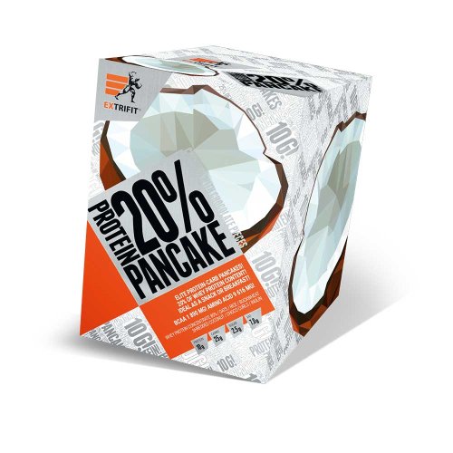 proteinovo-sacharidová palačinka ze zdravých, přírodních surovin pohanka, rýže, oves vláknina z kořene čekanky syrovátkový (whey) protein 80% 10 g bílkovin a 1900 mg BCAA v každé palačince 24 – 27 g komplexních polysacharidů s nízkým glykemickým indexem pouhé 1-3 g jednoduchých cukrů! Proteinovo-sacharidové palačinky Extrifit® Pancake 20 % jsou opravdovým proteinovým jídlem, které Vás výborně zasytí a které si doma jednoduše uvaříte. Proteinové koktejly jsou fajn, o jejich přínosu pro růst svalové hmoty není třeba diskutovat, ovšem velice často máte po nich brzy hlad a začne Vás honit mlsná. Přeci jen nezaplní Váš žaludek dostatečně, zejména v období diety. Proteinovo-sacharidová palačinka Pancake 20 % toto řeší. Skutečně si uvaříte. Žádná náhražka jídla, ale opravdové a dietní jídlo a příjemné, avšak nijak náročné vaření. Vynikající dietní hodnoty a báječná chuť palačinek. Proteinovo-sacharidové palačinky od Extrifit jsou ideální pro ty situace, kdy potřebujete tělu dodat kombinaci kvalitní bílkoviny a kvalitních komplexních sacharidů. Mají úžasné komplexní složení a dokonalé zastoupení živin. Kombinace pohanky, ovsa, rýže a syrovátkového 80% proteinového koncentrátu tvoří plnohodnotné jídlo s ideálním zastoupením bílkovin a sacharidů. Uvedené suroviny jsou doplněny o inulin z kořene čekanky, vlákninu s prebiotickým účinkem. Použité přírodní suroviny: