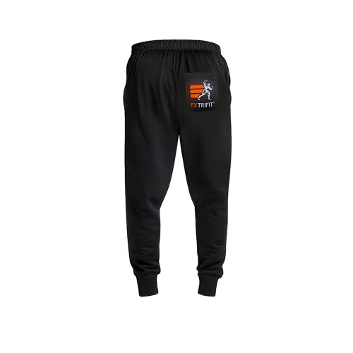 Pohodlné tepláky firmy Extrifit s výšivkou a potiskem. Černá barva s oranžovými tkaničkami pro stažení v pase.