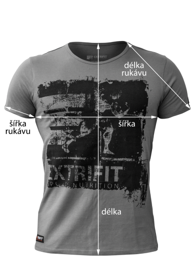 šedá/černá - šedé triko a černý potisk Rozměry: Oblasti měření zaznačeny na připojeném ilustračním obrázku (uvedené míry jsou orientační, mohou se drobně lišit). velikost M