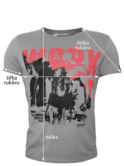 šedá/červeno-černá - šedé triko a červeno-černý potisk Rozměry: Oblasti měření zaznačeny na připojeném ilustračním obrázku (uvedené míry jsou orientační, mohou se drobně lišit). velikost M