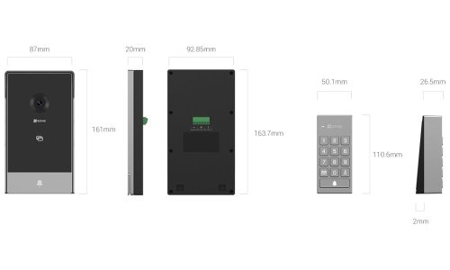 Dveřní stanice je vybavena jedním zvonkem a kamerou s rozlišením 2048 × 1296 px. Úhel záběru kamery je 162° diagonálně. Pro přenos obrazu používá kodek H.265. Samozřejmostí je integrovaný mikrofon, reproduktor a čtečka přístupových čipů RFID. Připojení zvonku je realizováno 2drátově. Dotykový 7" monitor lze připojit pomocí Wi-Fi a disponuje microSD slotem. Vzdálené ovládání přes aplikaci, povrchová montáž, odolnost vůči nepříznivým vlivům dle certifikace IP65. Z chytrých funkcí je k dispozici například detekce lidské postavy, možnost vygenerování dočasného návštěvnického kódu či volitelná funkce změny hlasu pro zachování soukromí při komunikaci. Součástí balení je také číselná Bluetooth klávesnice.