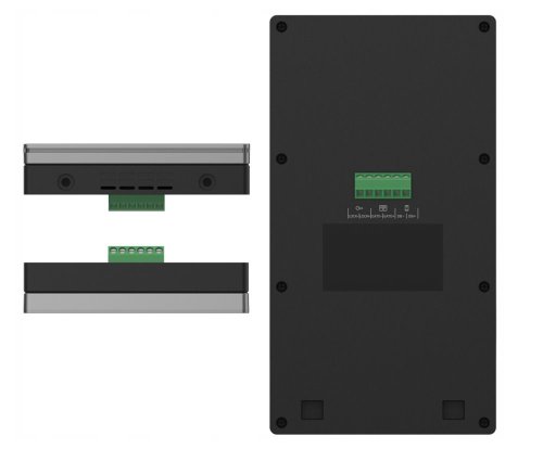 Rozhraní: 1× 2drát pro monitor, 1× nenapájený kontakt pro vrata, 1× kontakt pro zámek