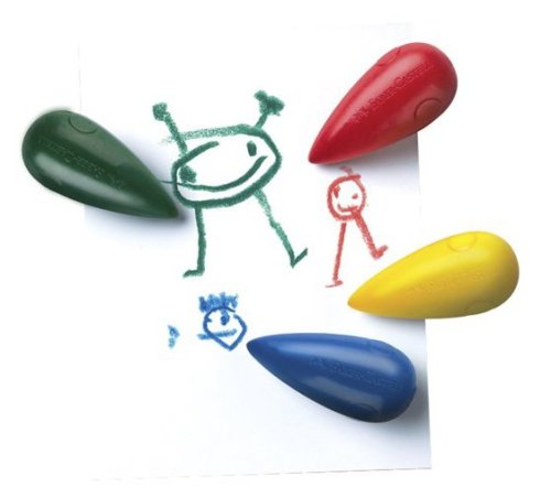 Plastové pastelky s ergonomickou oblastí úchopu do dlaně. Sada objehuje čtyři barevné pastelky (žlutou, červenou, zelenou a modrou).
