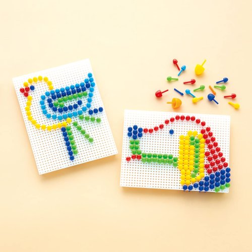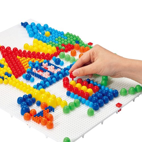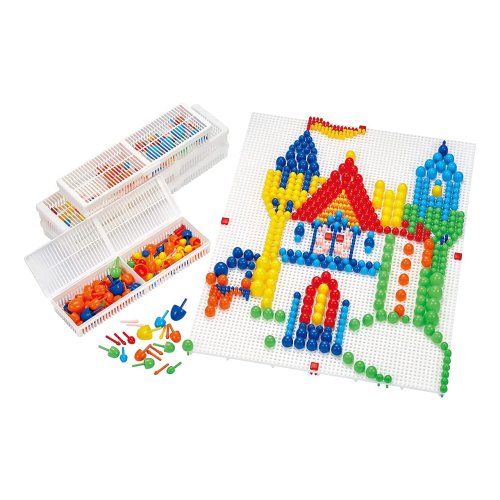 Vytvářejte jedinečné obrazy umisťováním kolíčků rozmanitých pestrých barev a velikostí do děrovaných desek. Desky lze spojovat, a výtvarné kreace tak mohou růst zároveň s věkem a rozvíjejícími se dovednostmi dětí. Začínající výtvarníci se mohou opřít o předlohy, které jsou součástí balení. Skládání mozaik může pomoci relaxovat a přitom stimulovat představivost, zručnost, soustředění a trpělivost. Vyrobeno z kvalitního plastu, který je pevný, odolný a zároveň nezávadný. Hlavní vlastnosti:600 kolíčků (4 velikosti, 7 barev), 4 děrované desky se spojkami a předlohymodulární, lze stavebnicově rozšiřovatvyrobeno v Itálii