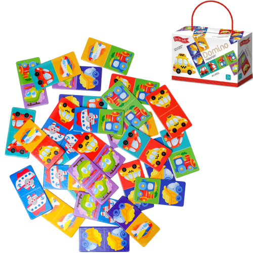 Far Far Land Domino s obrázky doprava. Balení obsahuje 28 karet. Hra pro 2-5 hráčů. Při hře 2 hráčů každý hráč dostane 7 karet. Při hře více hráčů každý dostane 5 karet. Zbývající karty jsou v "banku.“ Hráč, který má "dvojitou" kartu (kartu s totožnými obrázky), hraje první. Pokud žádný z hráčů nemá dvojitou kartu, každý hráč si vezme jednu kartu z banku. Pokud má více hráčů dvojitou kartu, začíná ten mladší. Pro rozehrání prvního tahu si však můžete vymyslet svá vlastní pravidla. Hráči se střídají a jeden za druhým přikládají karty ze své ruky ke kartám na hrací ploše se shodným obrázkem. Pokud hráč nemá shodný obrázek, musí si vzít kartu z banku. Hráč, který položí svou poslední kartu na hrací plochu, vyhrává. Pokud všichni hráči mají v ruce karty, ale není možné hrát dál, hra je ukončena "blokem" a vyhrává hráč, který má v ruce nejmenší množství karet.