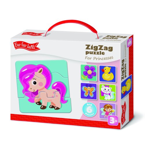 Far Far Land Puzzle ZigZag vlnky, motivy pro princezny. Balení obsahuje 6 puzzle obrázků.